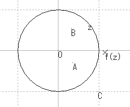 単位円の像は,原点を含んでいないので,単位円の内部には,解はない。