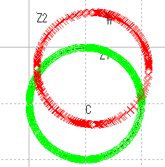 複素数に関して,様々なものを写像の観点で調べることができるが,まず最初の出発点は四則演算であろう。なお,「差」に関しては「a - b 」は「a + (-b)」と考えられるので,「和」の一部として考えればよい。また「商」に関しては,「a/b」は「a * (1/b)」と考えられることと,GCでは「逆数(1/z)」があるので,「逆数」を考えればよいだろう。そういう意味で,最初の演算は,「和」,「積」,「逆数」とする。