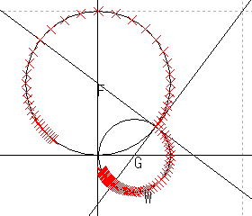 これらの結果から,原点を通る直線はやはり原点を通る直線に,原点を通らない直線は,円に写ると推測される。
