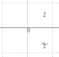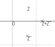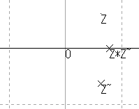 複素数平面上に 点 Zをとると, 実軸に対して対称な点が z~になる。