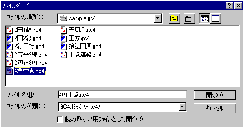 たとえば 「sample.gc4」 の 「4角中点.gc4」 を選択 |
