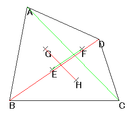 しかし,しっかりというのは,語弊がありますね。その棒の両端に重さがかかっているのだから,この線分上の一点が重心と言っていいはずです。つまり,重心は,この線分上にあると言えるでしょう。