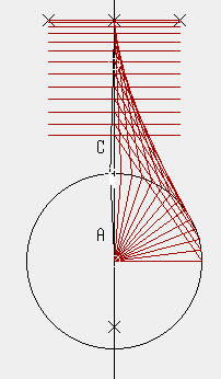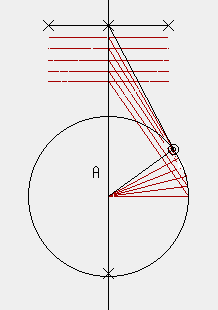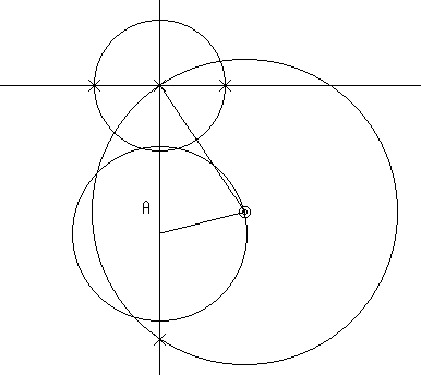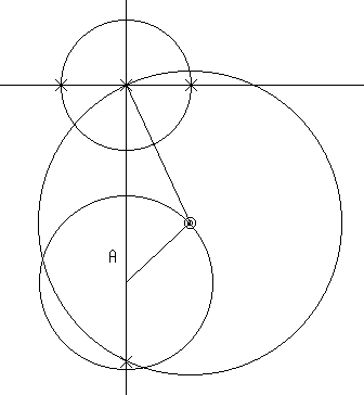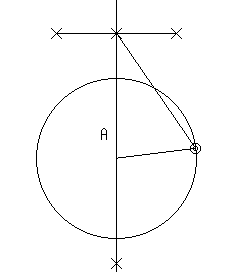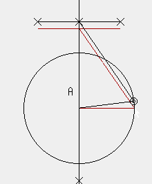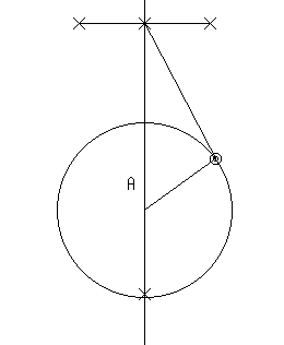 - 先端を中心としある大きさを半径とする円を作り,上記の直線との交点を作る。