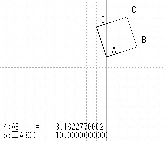 A,Bを動かすと,正方形が変わり,面積も変わります。 なお,測定桁数を多くしてみましょう。