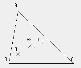 - 三角形 ABCと,その外心,重心,内心,垂心がある。だが,どれがどれだか分からない。調べよ。