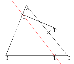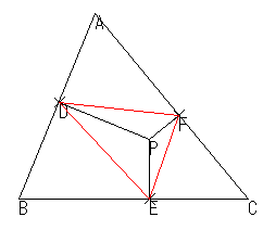 ΔABCと動点Pがある。点 Pから三角形のそれぞれの辺 AB,BC,CA あるいはその延長線上に下ろした垂線の足を D,E,F とし,それらを結んでΔDEFを作る。Pの位置を変えるとΔDEFの形も変わる。PをΔABCの内部のどこに取るとΔDEFは最大値を取るか。