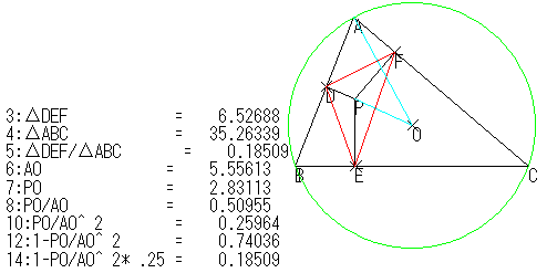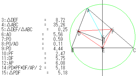 これを手がかりとして,ΔDEF/ΔABCを PO,AOで表す式を考えてみた。