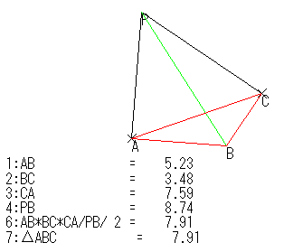 ΔDEF = {PD・PE sin (π - B) + PE・PF sin(π - C ) + PF・PD sin(π - A)}/2