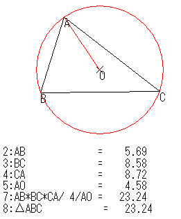 特に,C が外接円に一致する場合には,面積は 0 となる。