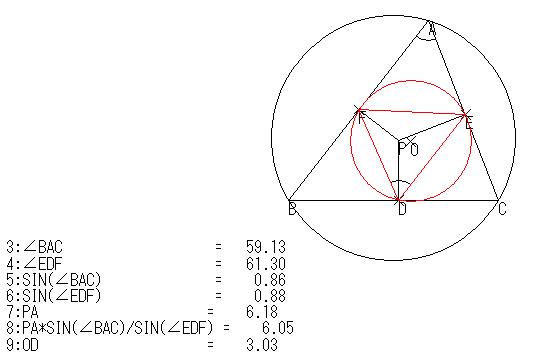 EF/sinA = PA (PAはΔAFEの外接円の直径)
