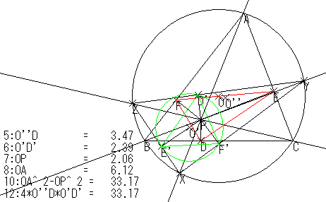 (3) rr'=1/4 |OP^2-R^2|を示せ。但しRは三角形ABCの外接円の半径。