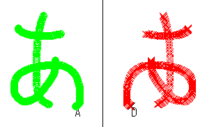 点Aで字を書いてみる/できあがりが正しい字になるように書いてみる