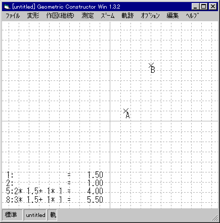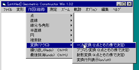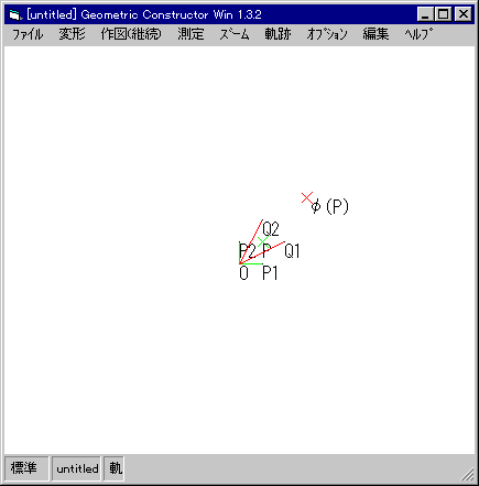 この作図は,GC/Winの中では,「マクロ」として実装されている。つまり,何も作図していない状態から,「作図(継続)」の「マクロ」から「一次変換」を選択すると,次のような図が得られる。