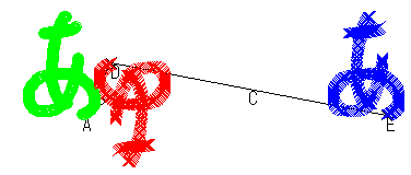 さらにそれを点 C に関して点対称移動したものが点 E である。