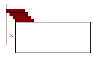 図のように,机の上に10円玉をいくつか積み,それを少しずつずらしてなるべく前に押し出したい(図の中の x を大きくしたい)。どこまで押し出すことができるだろうか。